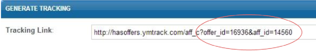 广告商将广告投放在联盟后,联盟会为每一个推广此offer的每一个affiliate生成一个独一无二的url:tracking link,包含着该offer的id和affiliate在联盟内的ID。