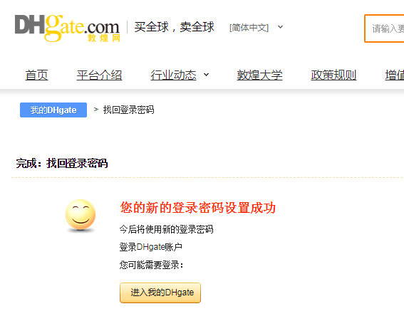 新密码设置成功,可以重新登录经营了。