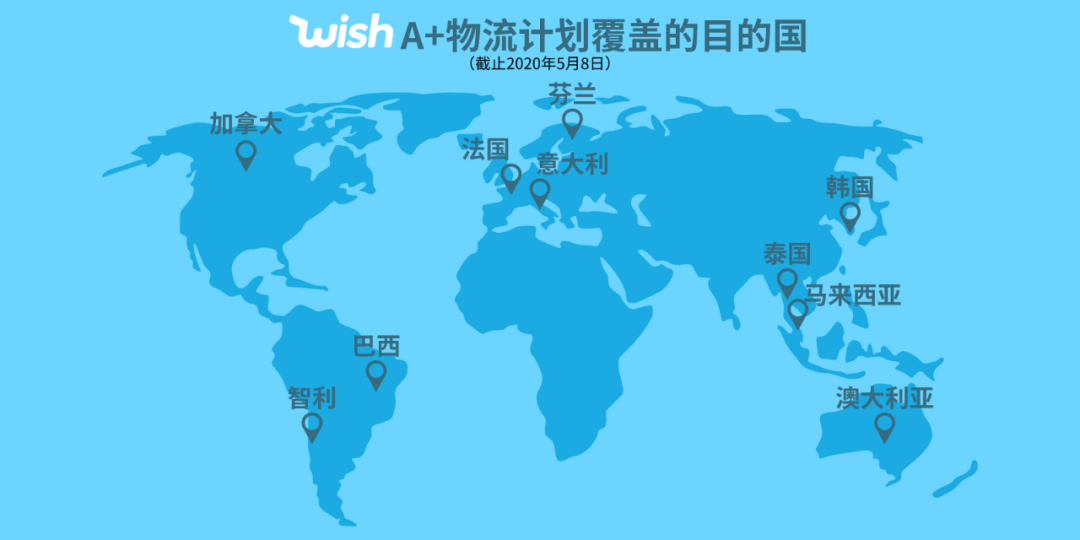 A+物流计划是Wish平台推出的一项托管式的直发物流服务,面对新冠疫情,Wish也紧急开放了法国、意大利、澳大利亚等国家路向,帮助商户继续拓展全球市场。