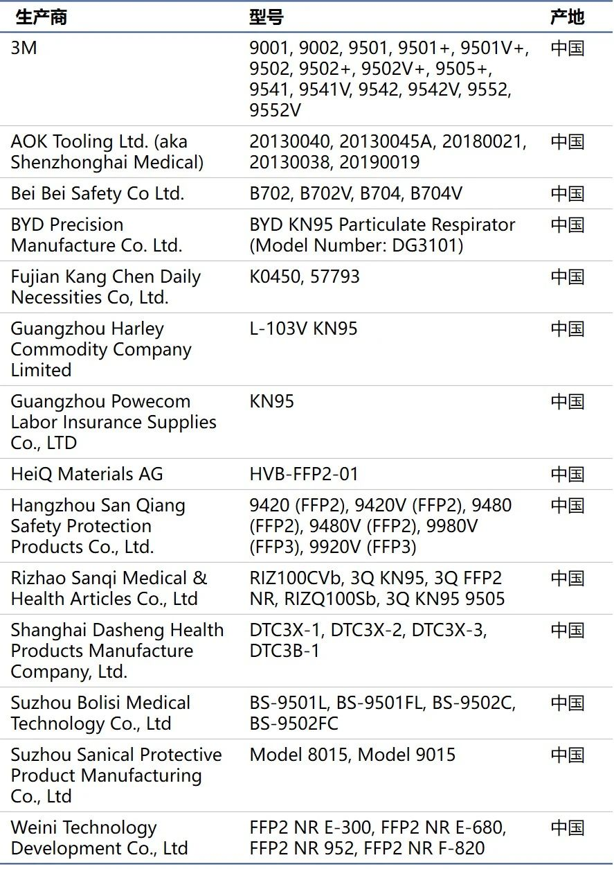 据路透社报道,美国疾病控制和预防中心(CDC)将N95口罩列为重要的防护用品,这种口罩的设计目的是过滤空气中至少95%的颗粒。根据美国国家疾病预防与控制中心(CDC)国家职业安全与健康研究所(NIOSH)于同一天发布的最新检测结果,67 种不同类型的进口 N95 型口罩中,约有 60% 未达标。FDA表示,它还在加强对从中国进口的口罩的检控,并将对这些口罩进行随机检测。这一政策推翻了 FDA 于 4 月 3 日签署的紧急授权令,该 EUA 允许从中国口罩制造商那里进口未经 NIOSH 测试,但已通过独立实验室审查的口罩,口罩商应证明其符合美国疾控中心的标准,标准要求过滤95% 的 0.3 微米或更大的颗粒,包括新冠病毒。昨日,FDA 重新发布了 EUA,除允许进口名单(附后)大大缩短外 , 还做了以下修订:- 修订资格标准,允许根据对独立实验室检测记录的标准的可接受的性能进行授权;