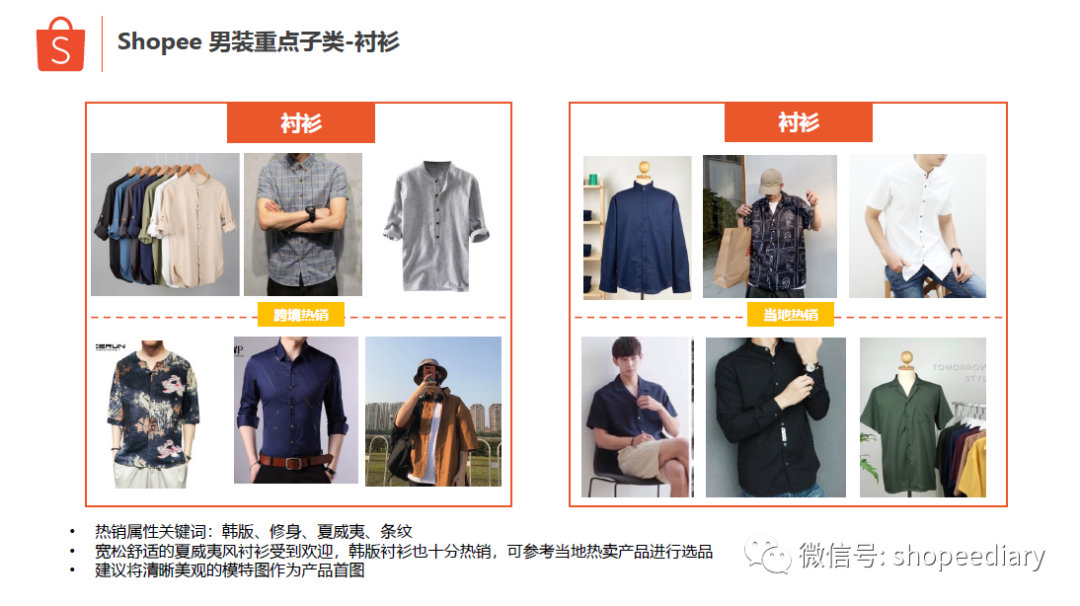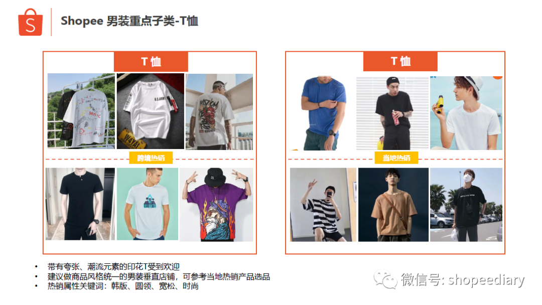 不难发现,男装跟户外运营的用户群体都是男性,用户群体是重叠的,这样我们能把男装跟户外运动放在同一家店铺来做吗? 如果是我们自己来选择,我们一定是分开操作,随着平台的发展,店铺的必然会走向垂直化、专业化,如果由于用户群体的重叠度高,就把不同类目放在同一家来运营,那么运营又回到老路上了,变成了新的杂货铺。 就像女装跟美妆,用户群体也高度重合,但是随着类目的发展,女装店是垂直的女装店,美妆店也必然是垂直的美妆店。 正确做法一定是两家店,然后通过客服工作来进行客户的引导,转化到新的店铺去购买。老店带新店。而不是都堆在一家店。这样才更突显店铺的运营的专业化。只要是虾皮的卖家,新店铺并不难申请,具体规则如下:公司当前的每日平均单量 >=15, 每个季度,最多允许申请新店3个,且同站点不多于2个公司当前的每日平均单量 <15, 每个季度,最多允许申请新店2个,且不同站点(2)过去30天内公司新增扣分 >= 2分的店铺需 <= 2家 或者少于该公司下总店铺数量的20%(取两者之间较大者)(3) 公司日单量=0的店铺需 <= 该公司总店铺数量的20%(1)纯色日韩风T恤是基本款,同时带有夸张、潮流元素的印花T也受到欢迎(2)宽松舒适的夏威夷风衬衫受到欢迎,韩版衬衫也十分热销