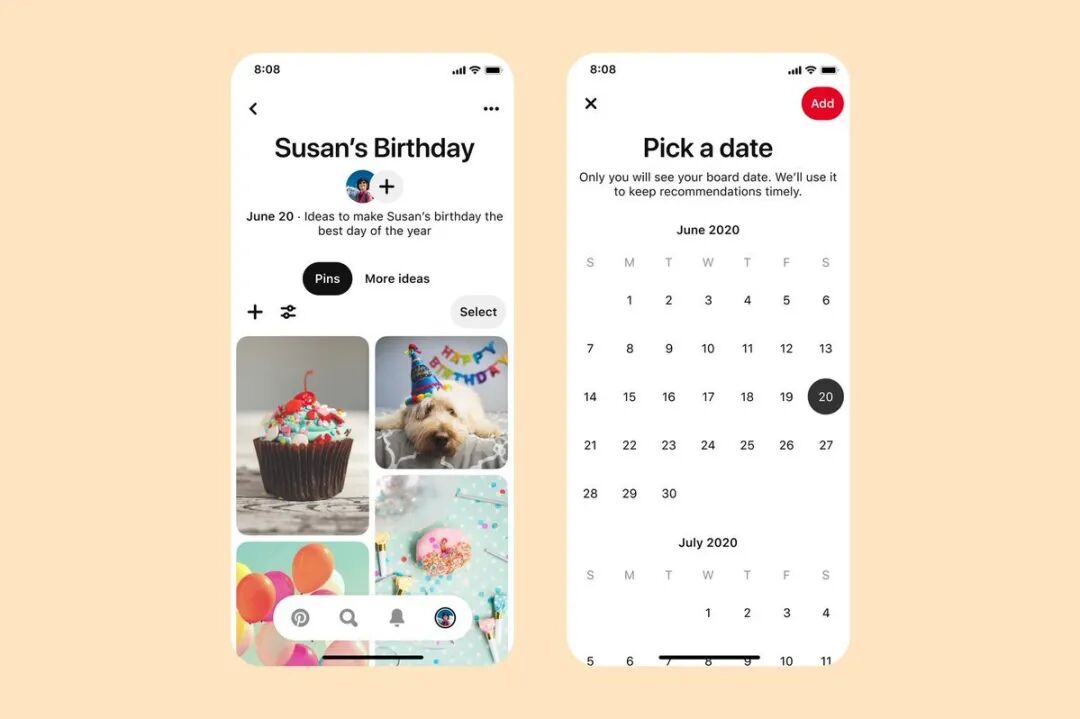 最近Pinterest增加了一个新的活动计划组织工具,帮助平台用户追踪和收集在平台内自己搜索过的创意点子和激发灵感的图文。