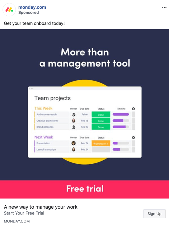 在上述广告中,用户有两次行动机会,可以单击文本中的链接(视频上方)或单击下面的“注册”按钮。