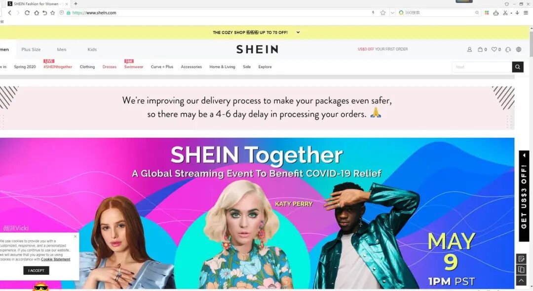 SheIn是一家国内公司创办的专注于女性快时尚的出口跨境B2C互联网企业(南京领添信息技术有限公司)。于2008年上线Sheinside.com,主打女装产品外贸业务;2009年创建主体品牌SheIn,全面打造其专属网站shein.com;2015年6月,正式更名为SheIn,同时推出阿拉伯站点;其阿拉伯站点服装特别受阿联酋消费者的喜爱;截至于2016年5月,SheIn拥有1000万客户,覆盖全球224个国家和地区;致力于成为跨境精选时尚零售市场的领先者。