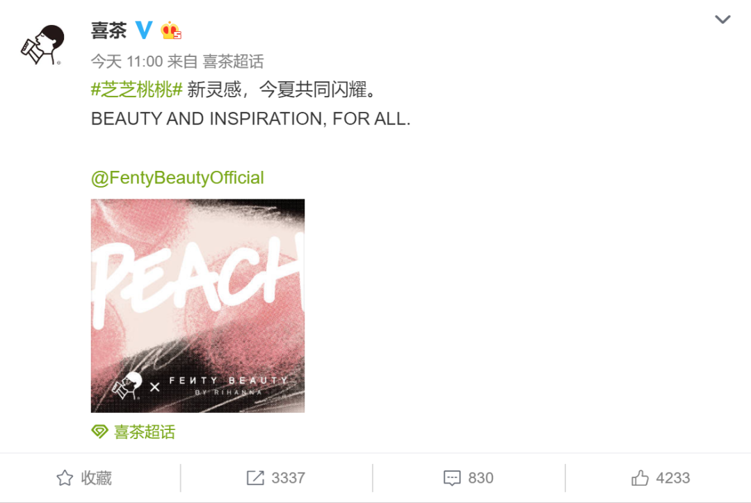 4月1日愚人节这天,周边狂魔旺仔在微博上宣布将会推出旺仔防疫包,包括口罩、除菌水以及加油小贴纸,当然旺仔说话算话从不骗人,哪怕是在愚人节也不开玩笑,并在微博评论区非常肯定地表示口罩已经正式投入生产,5月11日正式上线发售。4月29日,美国音乐天后Rihanna创立的前卫美妆品牌Fenty Beauty和跨界专业户喜茶同时发博,官宣合作。Fenty Beauty,这个由Rihanna主导,并按照她的名字来命名的彩妆品牌,在2015年就已经注册,2017由Rihanna和LVMH集团美妆孵化器Kendo Brands共同推出,几年来其收入额一度秒杀众多奢侈品牌。去年7月正式宣告登陆亚洲,并发布首支“亚洲市场特供”TVC。其中《创造101》的练习生王菊也出镜了中国区广告片助力宣传。同时开通官方微博和小红书,并在今年9月官宣了范丞丞和李凯馨为大中华区代言人和品牌大使。这次与喜茶联名,再一次显示品牌对中国市场的看好。跨界本来就是借双方影响力,提高知名度,实现破圈的活动,这一波合作,喜茶也赚足了风头,引发众人猜测这波合作到底是要推出喜茶味的口红还是口红形状的喜茶杯,亦或是.....从喜茶之前的各种联名来看,还真的有点难猜?官宣陈坤代言,携手冯唐出字体...万宝龙最近戏有点多今日(4.28),奢侈品品牌万宝龙正式官宣陈坤为全球品牌大使。在此之前,得到万宝龙这一title的明星是好莱坞实力男星休·杰克曼和演员范冰冰。短片中,他执笔书写着初次表演成长至今的心路历程,从个人角度出发感受并传达万宝龙“向心而行 自有所成(WHAT MOVES YOU, MAKES YOU)”的全新品牌主张。官宣代言人之外,万宝龙近日动作不断。4月15日,万宝龙正式上线天猫官方旗舰店,并同时入驻天猫奢品Luxury Pavilion频道。上线首日,万宝龙在天猫旗舰店独家限时发布新品——万宝龙首款无线智能耳机和书全新大班系列小王子与星球特别款书写工具。此外,万宝龙携手品牌挚友冯唐共同发布全球首款中文官方字体——【万宝龙中文冯唐简体】。