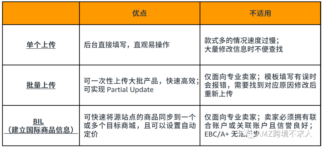 批量上传:可一次性上传大批产品,快速高效;可实现 Partial Update。仅面向专业卖家模板填写有误时会报错,需要找到对应原因修改后重新上传BIL(建立国际商品信息):可快速将源站点的商品同步到一个多个目标商城,且可以设置自动定价。仅面向专业卖家;卖家必须拥有联合账户或关联账户且信誉良好;EBC/A+无法同步。以上是现在上新的三种方式,上篇我们讲了单个上传(手动上传),今天我们就来讲讲批量上传的流程。