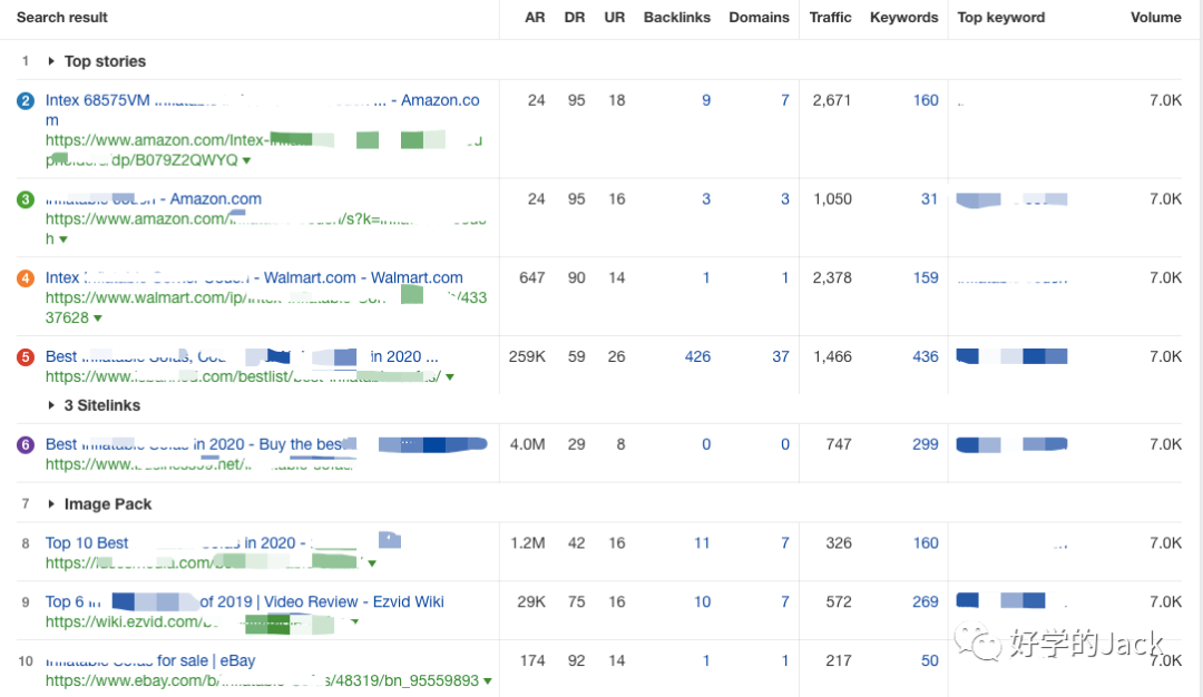 Ahrefs另外一个参考的就是搜索引擎排名页面:SERP(search engine rank page),如果首页网站全部是amazon, ebay, bestbuy, 这种DA PA 80 90以上的网站,那这个产品也不适合做谷歌排名。