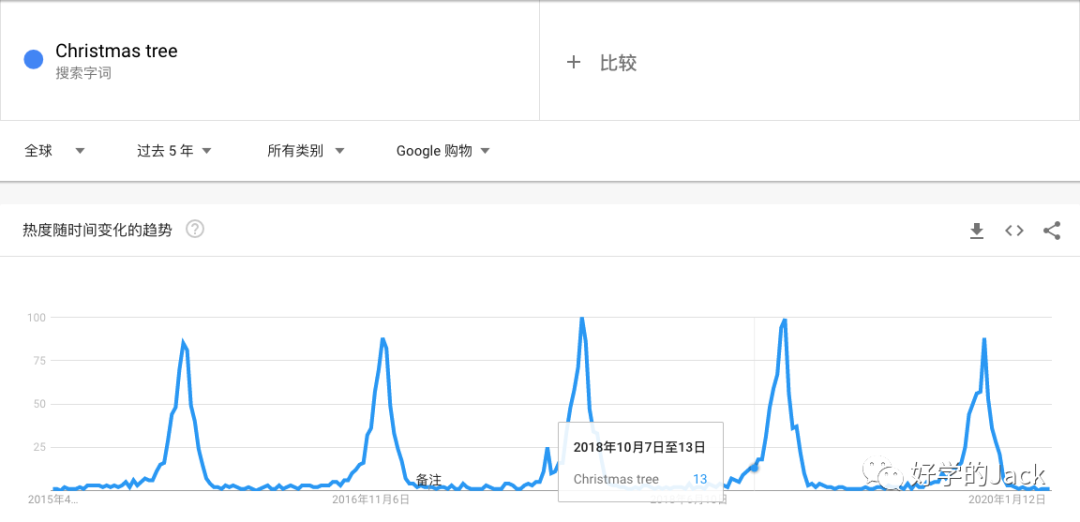 比如说下面的这个圣诞树 Christmas tree,这个产品一般是每年圣诞节前2个星期搜索量最大,这个产品对于99%公司都不适合。