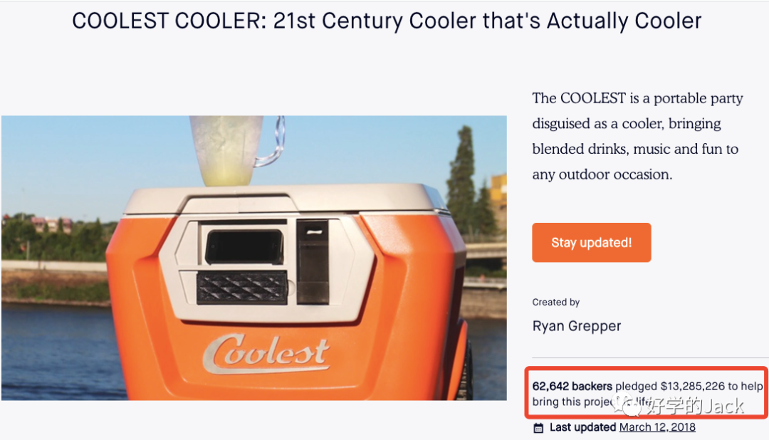 比如说,kickstater上面众筹项目总金额第二的是coolest cooler,这个项目有6万2642个人支持,众筹了1300多万美金,有一个多亿RMB了。但是这个项目烂尾了,发不出货,现在kickstarer上面每天还有人上去留言骂那个团队。