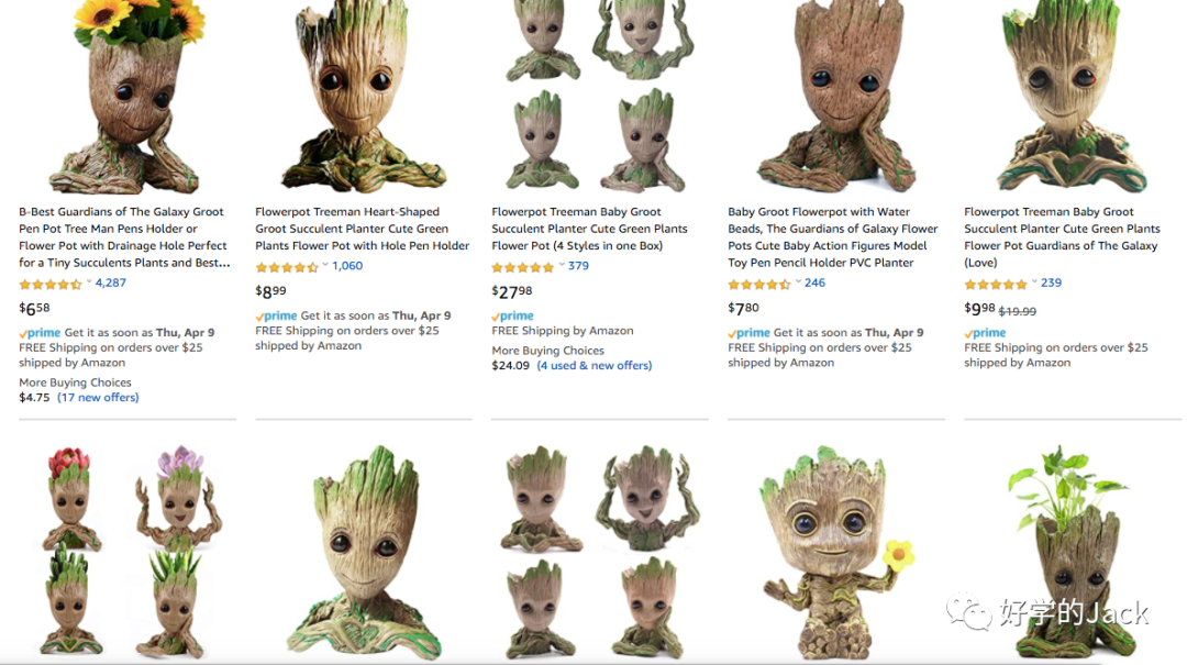 再比如说,有些产品销量很不错,可能需要授权,如果你没有拿到授权,很可能就会被告说你侵权。这种产品就不太适合做了,比如说groot flower pot这个陶瓷卡通头像,这个产品头是空的,里面可以放盆栽,或者当笔筒。