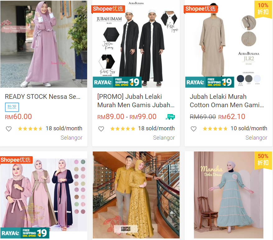 而对于男性,他们对服饰中的传统服装、长袖衬衣、长袍的购买欲望也很高。在斋月期间,许多男士穿着相关服装去清真寺参加相关宗教活动。一般搜索Baju Koko可以找到相关产品。