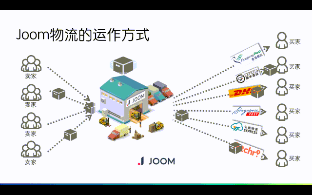 首先,要从Joom物流的操作模式讲起。Joom物流目前已经覆盖了40多个主流的国家,通过Joom物流运送的订单已经占据了平台总订单数的接近80%,其覆盖的国家和渠道仍在继续拓展当中。Joom物流经过统一揽收、安检扫描、分拣、合并等一系列流程后,把包裹交给对应的物流服务商做最终的承运以及派送。
