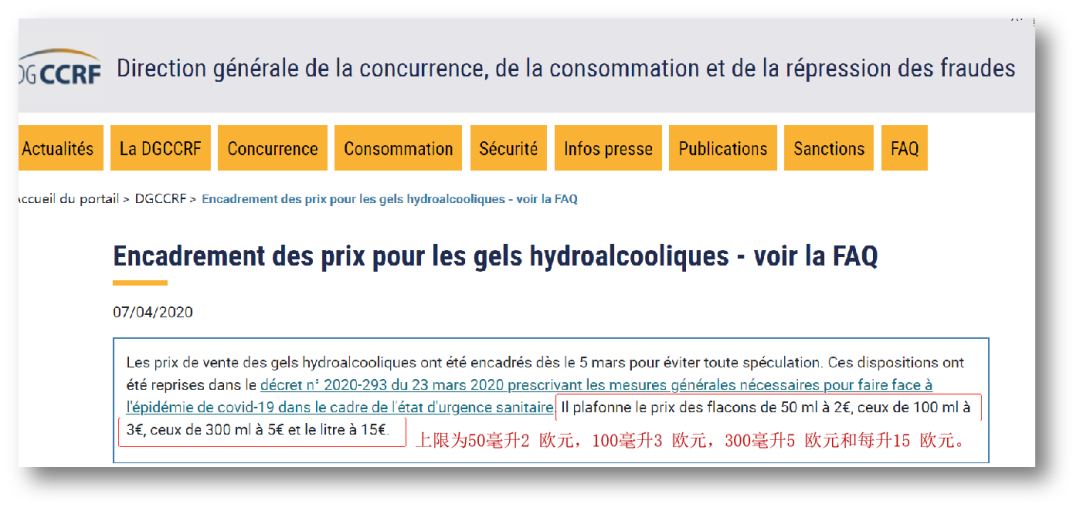 法国就消毒搓手液限价细则*