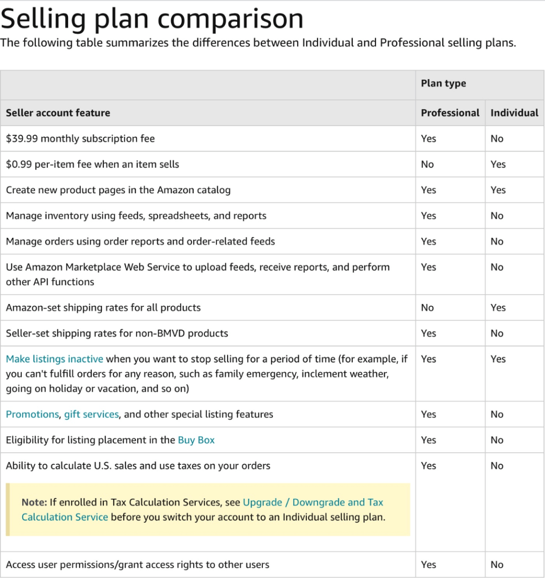 一道简单的数学题,39.6的月租金=40*0.99,也就是说,只要个人销售计划卖家销售的产品超过40个,所付出的销售费用就会高于专业卖家。