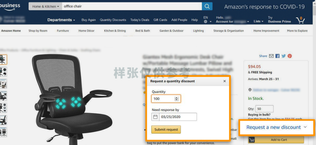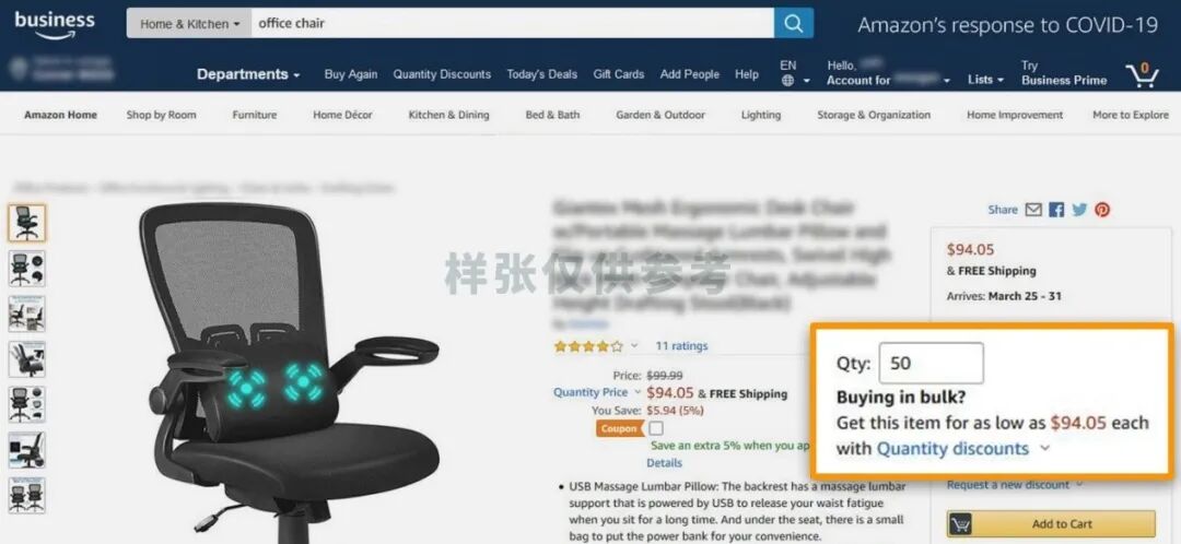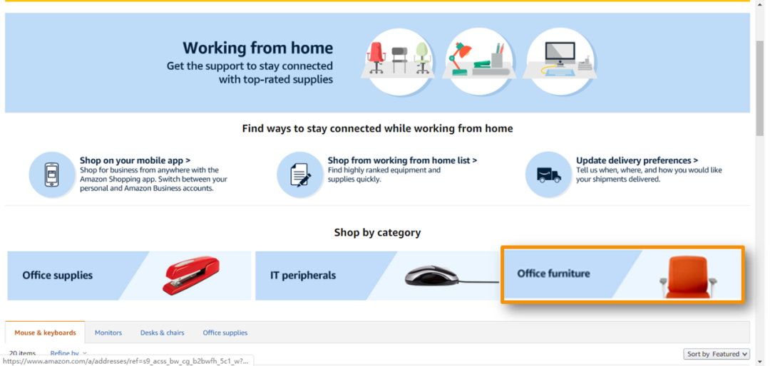 受新冠疫情影响,美国很多企业都开始让员工在家办公。为了提高员工办公的效率和舒适度,吉姆的公司决定拿出4800美金的预算,为员工集体采购一批符合人体工学的办公椅。接到采购要求后,第一次尝试在线上进行采购的吉姆,打开了Amazon Business美国站……