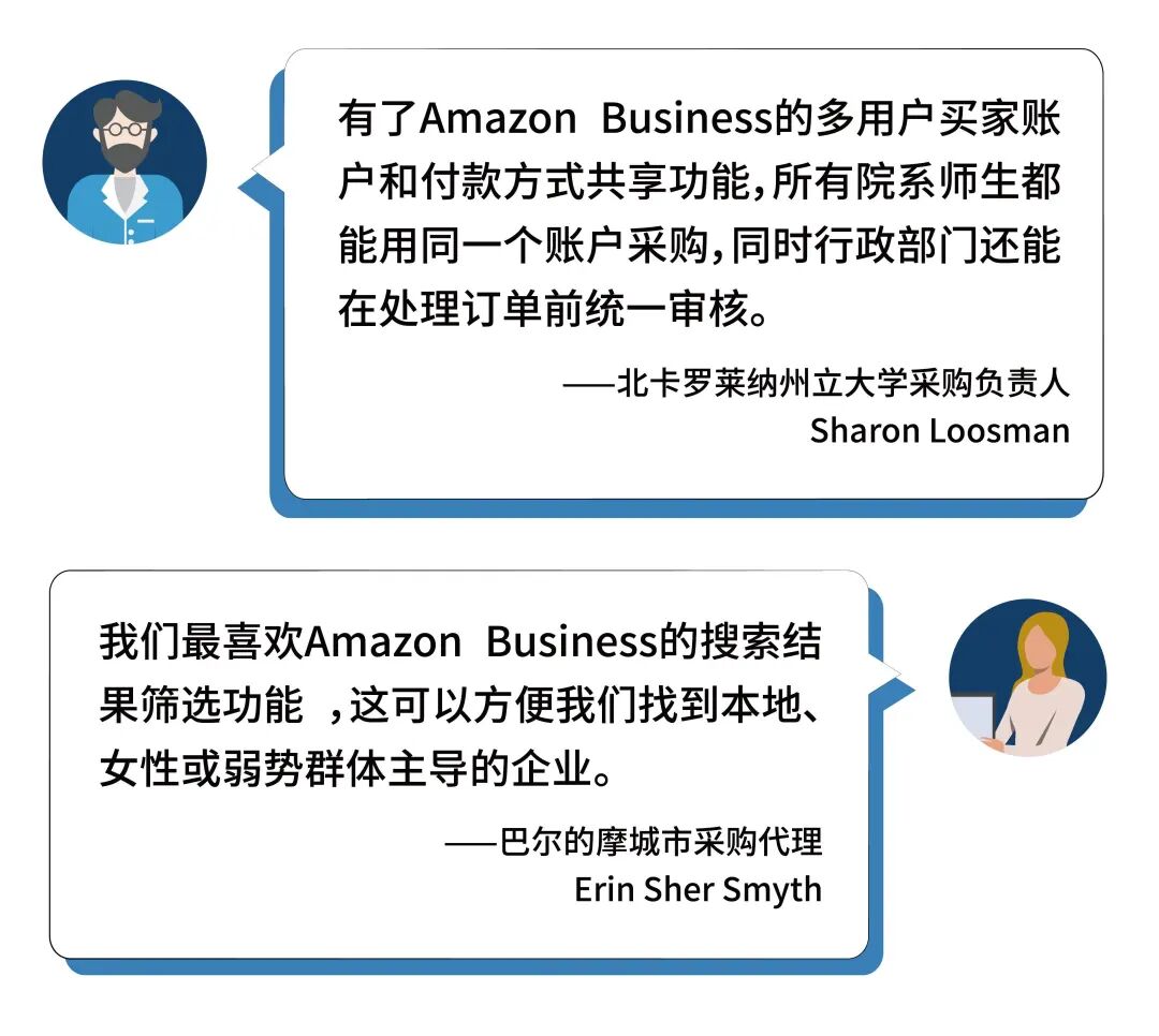 所以Amazon Business已经成为企业买家的首选站点。那它为什么能吸引众多企业买家呢?来听听他们是怎么说的吧!