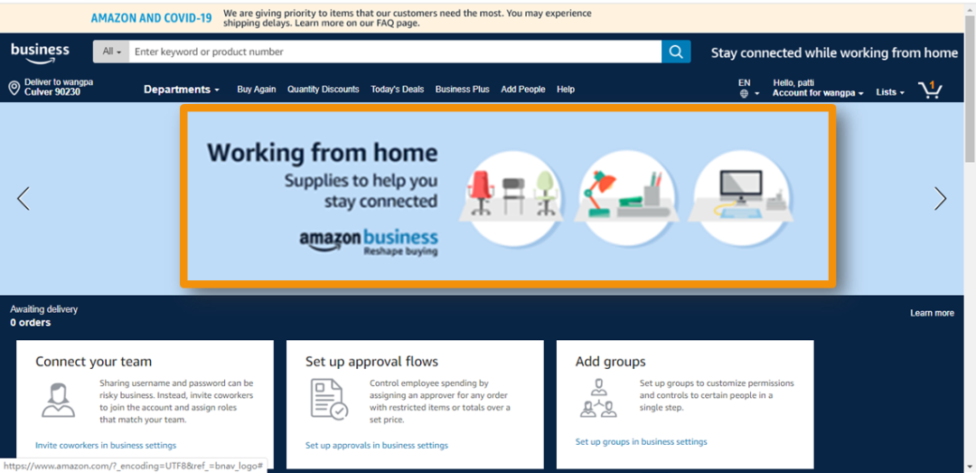 吉姆使用公司的企业买家账号,用行政部门的用户名登录了Amazon Business,发现企业端的界面和平时用个人账户购物的界面没有差别,用起来非常亲切!