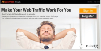 2. 访问主页链接 :http://portals.aliexpress.com ,并单击进入“注册”界面。