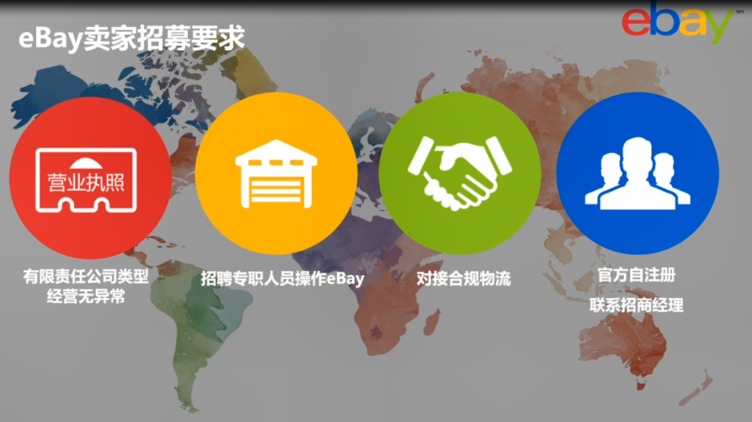 以上是营业执照方面。那对于操作人员方面,eBay要求有专职的人员来操作eBay,无论是老板还是员工,必须要有人专职并且懂eBay规则,这是我们的基本要求。