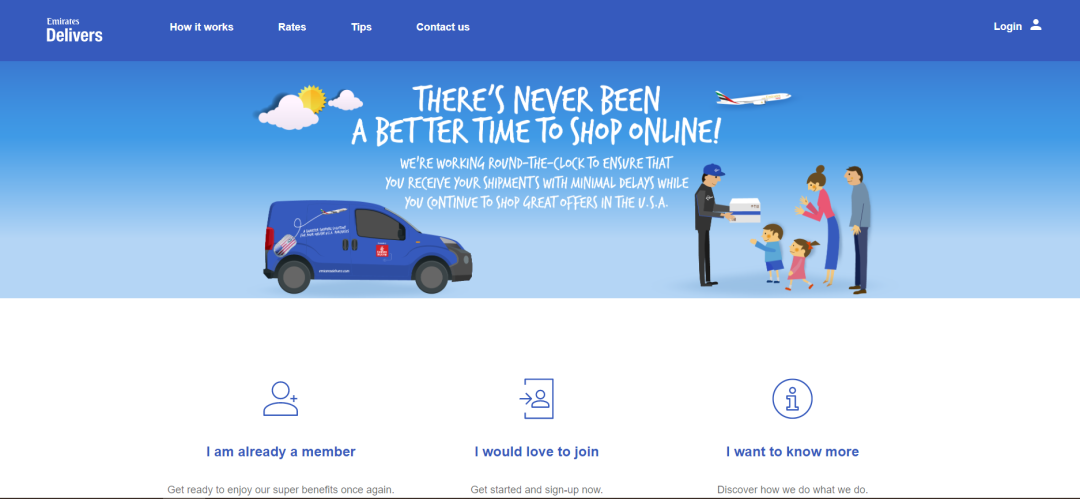 Emirates Delivers是直属阿联酋航空的电商物流平台,可将货物从美国零售商那的产品运送到阿联酋的各个地址。(详见:阿联酋航空的电商物流平台将在今年拓展至...)