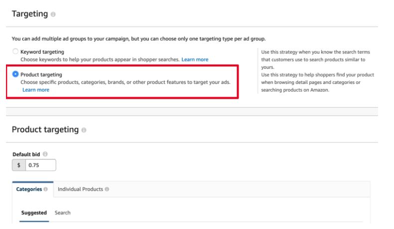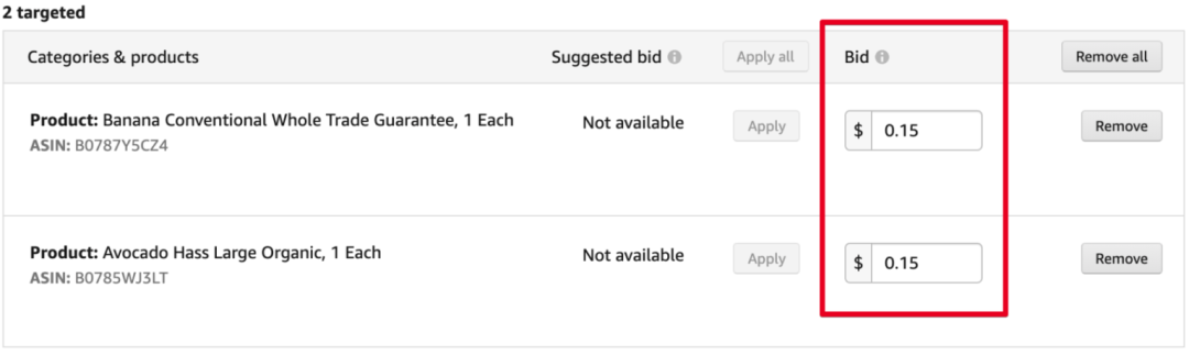 卖家可以查找一段时间范围内的数据,比如每季度、每月或每天。卖家选择时间后,Market Basket Analysis报告会显示时间范围内,所有ASIN里消费者最常一起购买的三种产品。报告提供的是这三种产品的百分比数据,即在购买两种产品(包含卖家的产品)及以上的所有订单里,消费者一起购买了这个产品的订单量所占的比例。注意:报告并没有解释消费者为什么一起购买这些产品的原因。一般情况下,这个报告中出现的产品大多是与卖家产品互补的产品(比如可能是竞争对手提供的互补产品);也有可能是相似产品,例如消费者购买多个品牌的类似产品,以确定最喜欢哪种品牌,但这种情况比较少见。那么卖家如何利用这个报告中的数据,提高自己的产品出现在“经常一起购买”页面的几率呢?“经常一起购买”是亚马逊根据买家的购物行为自动生成的数据。卖家可以利用Market Basket Analysis报告中的数据,创建特定的产品广告,提高你的产品出现在“经常一起购买”的概率。具体步骤如下:点击后台中的Campaign Manager,选择Create Campaign:给广告系列命名并设置好预算后,创建一个广告组,广告组的类型选择Product Targeting:浏览你的Market Basket Analysis报告,找到最常和你的产品一起购买的ASIN,然后在广告设置中的Individual Products里输入这些ASIN:注意,提高产品页面位置的竞价只能在广告系列中设置,不能在单个广告组里设置,这是广告系列提供的根据位置调整竞价的功能:这个广告的原理是,Product targeting类型的广告,会让你的产品与目标ASIN出现在同一个页面里。而将你的产品投放到另一个产品的详情页上,增加你的产品被一起购买的几率,也就提高了产品出现在“经常一起购买”里的概率。此外,之所以选择Product targeting的类型,是因为这种方式广告成本较低。如果选择Keywords targeting广告类型,但你的产品与目标ASIN关键词差距较大,比如你出售香蕉,目标ASIN的关键词是牛油果,那么亚马逊会向你收取更高的广告费用。就算花了大量开支出现在搜索结果里,却因为产品和搜索词不相关,容易导致低转化率。完成以上那些步骤后,每月查看一次Market Basket Analysis报告(你可以设置订阅),了解是否有新的ASIN出现,然后重复上面第3-5个步骤。以上就是让产品出现在“经常一起购买”页面的一个策略,卖家可以尝试一下。编译✎ 玛丽/卖方通