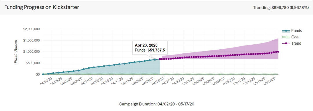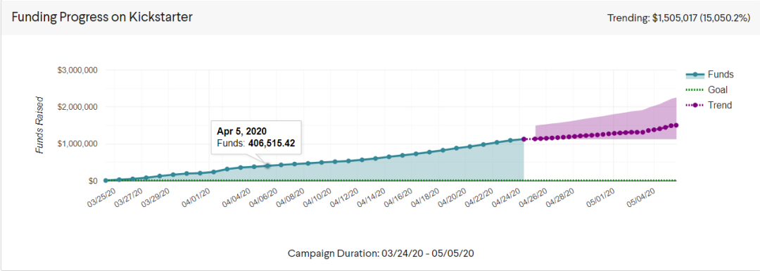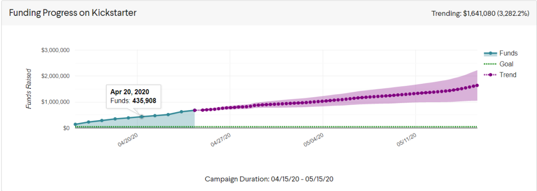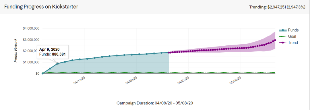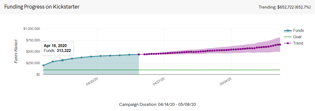第四,针对近期Kickstarter内部消息表示同期新项目数量相比去年下降了35%。在这样的非常时期,许多不可抗力造成项目延迟上线是不可避免的,而且这往往意味着,平台上项目之间的竞争激烈程度会有所下降,自然流量因为疫情原因有所上升,以不至于担心项目完全被淹没在汪洋大海里。