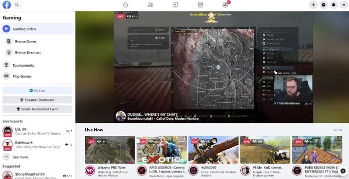 Watch:这里是流媒体玩家(Streamer)的家,此外,从最大的电子竞技和游戏的顶级出版商中发现新的视频;在Facebook游戏里,有整个世界的游戏等着你去探索。