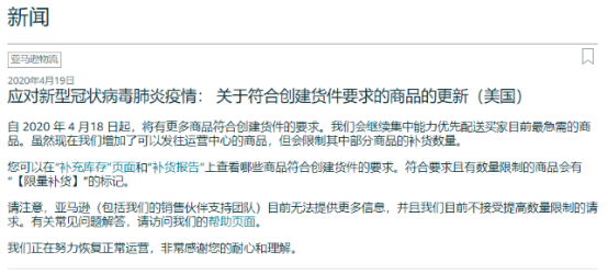 前两日,亚马逊美国站发布通知称允许更多商品创建货件。