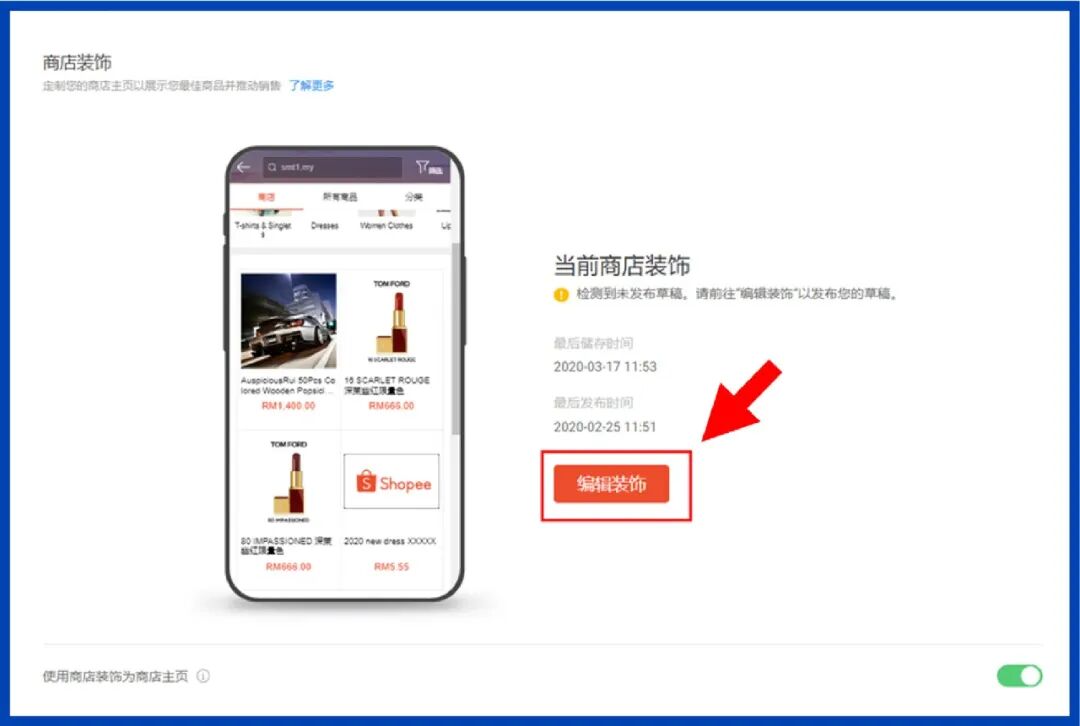通过Shopee卖家账号登录卖家中心后台,找到“商店装饰”按钮,点击后即可开始编辑商店相关装饰。