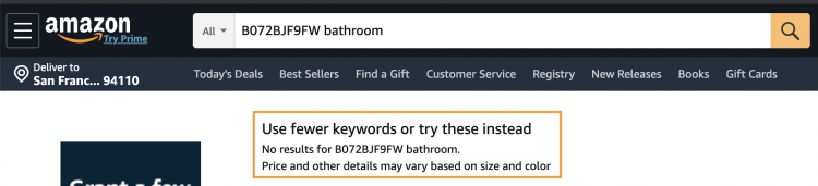 网址:https://www.maifangtong.com/tools-wordcounter卖家如何确定自己使用的后台关键词被亚马逊的算法索引了呢?方法就是卖家在搜索栏中输入ASIN和关键词,点击搜索按钮,如果算法索引了这个关键词,会出现相应的搜索结果,比如下图:如果关键词没有被算法索引,会返回下图中的结果。你就需要重新审查你的后台关键词列表了: