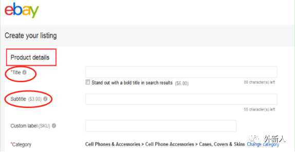 eBay的产品标题,分为主标题和副标题: