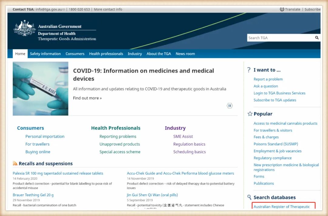 口罩产品在澳洲需要通过澳洲澳大利亚政府保健品管理局TGA注册,TGA是澳大利亚的治疗商品(包括药物、医疗器械、基因科技和血液制品)的监督机构,依据Australian Therapeutic Goods (Medical Devices) Regulations 2002,澳大利亚对医疗器械的分类几乎和欧盟分类一致,如果已经获得欧盟公告机构(Notified Body)签发的CE证书,是可以被TGA认可的,并可以作为满足澳大利亚安全法规的重要注册资料。TGA审批通过后会为生成ATRG登记号,查询方式如下。