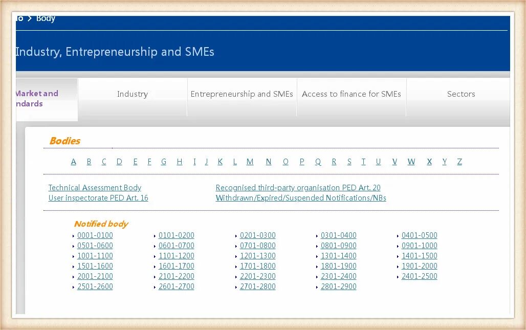 欧盟公布了一系列由欧盟统一监管和认证资质授权的机构,也就是我们说的NB机构,并授予每家机构一个唯一的四位数编码即公告号,CE证书的申请和颁发就由对应法规和指令授权的公告号机构颁发。