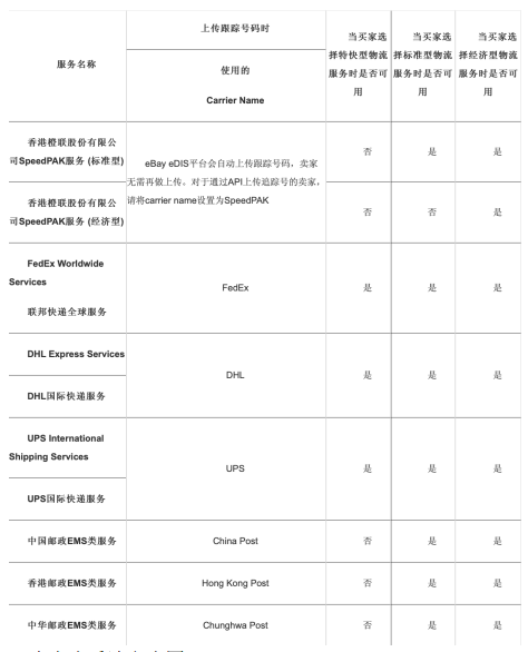对于所有直邮发货(物品所在地为非当地海外仓)的交易,必须使用eBay认可的跨境物流服务商,如橙联、DHL、Fedex、UPS、中邮、香港邮政、中华邮政等,并在承诺的处理时间内完成A-Scan。物流详情如下: