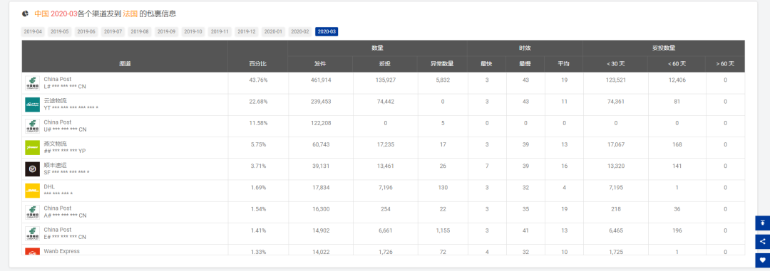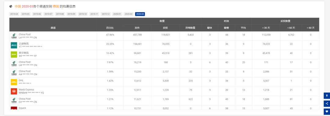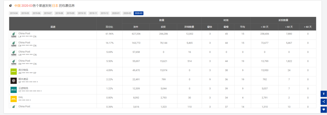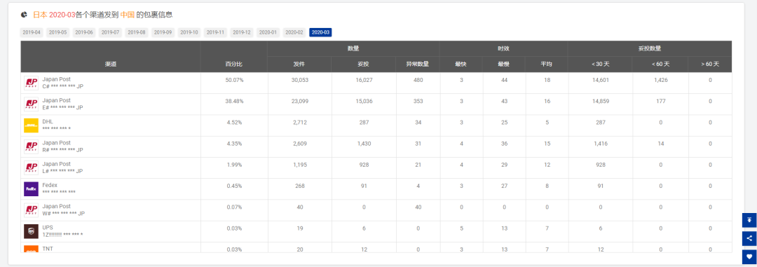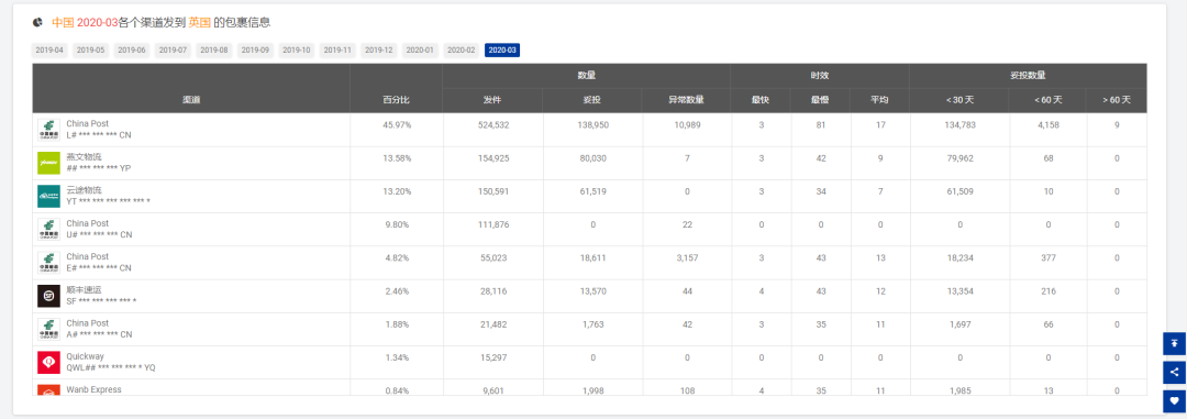 注:平均时效是过去6个月中最长的天数,平均17天;其中最慢到81天仍有妥投记录,去年数据曾经有过72天才妥投的