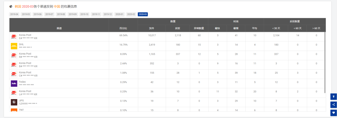 注:韩国发中国的数量较1、2月份已明显下降;平均10天,最慢41天