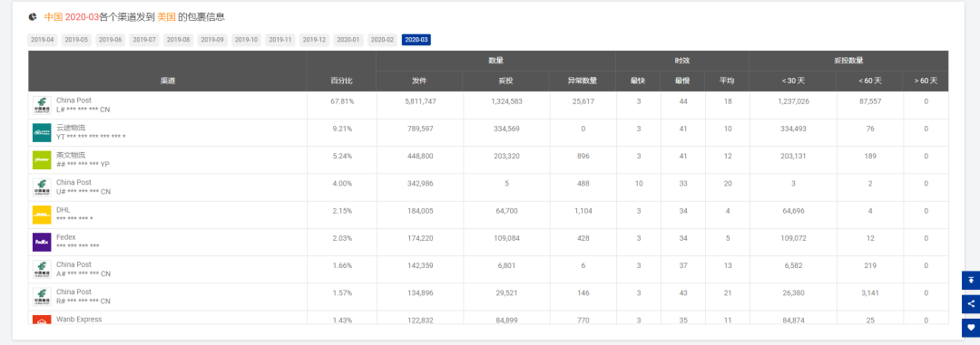 注:中国的邮路渠道占60.75%,比例略高于1、2月份,但较过去12个月的平均占比仍有所下降;美国的邮路渠道占11.03%,是过去12个月的平均新高(平均为8.19%)