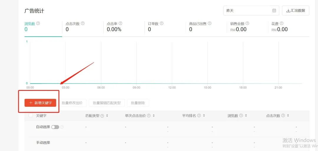 操作流程是:我的后台→营销中心→我的广告→新增广告→选择一个产品→新增关键字。最终界面的数据,可以让我们预估自己产品现阶段的市场容量有多大。