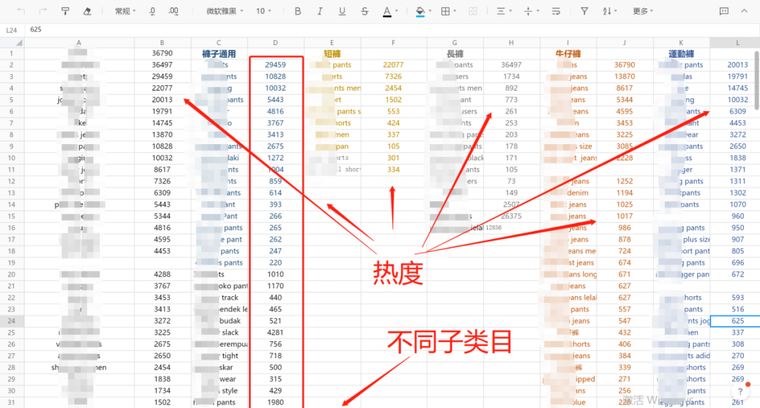 因为这个热度有时效性,所以要做时间段性的整理,在不同时间段相同关键词的热度,可以进行对比是涨还是跌,都可以做个统计。像是不同站点,不同类目下的不同产品,都可以整理出表格。