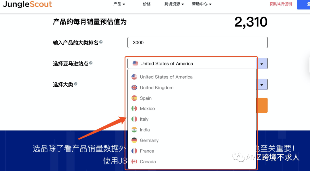 输入排名、类目和站点,就可以粗略的预估出销量。