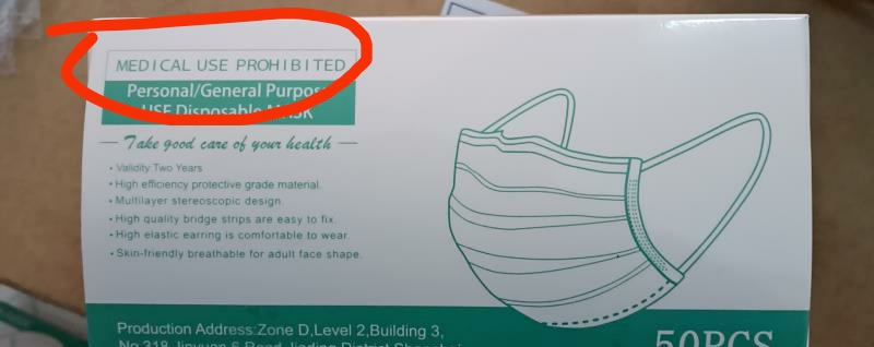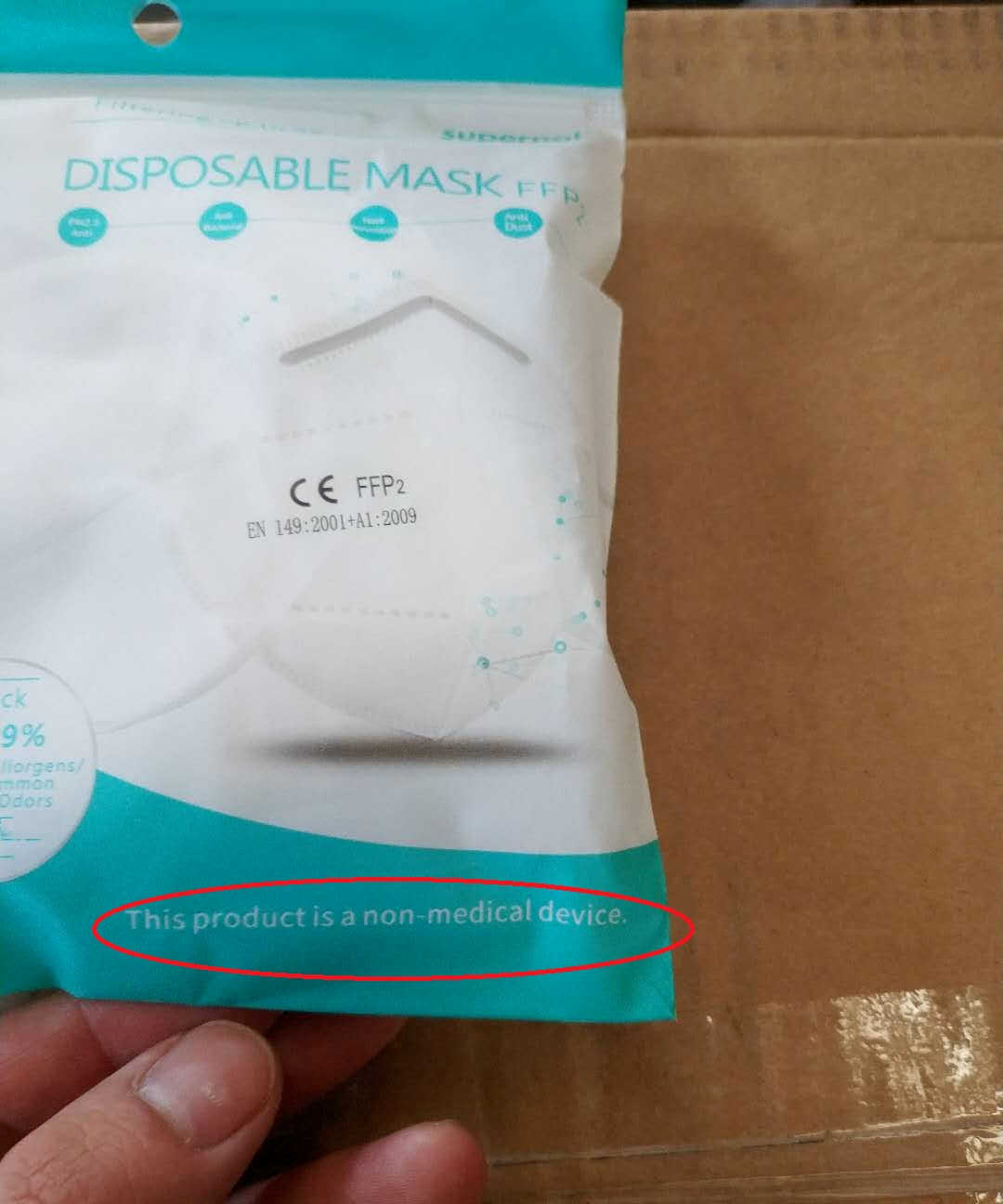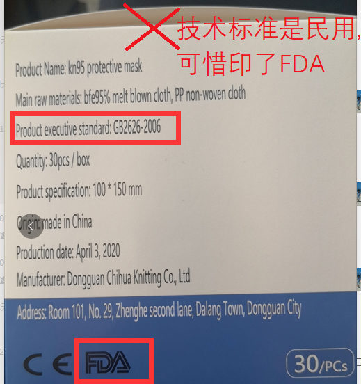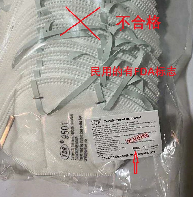 如果有FDA标志就意味着美国医用标准,但执行标准是我国民用口罩的话,就有矛盾了。