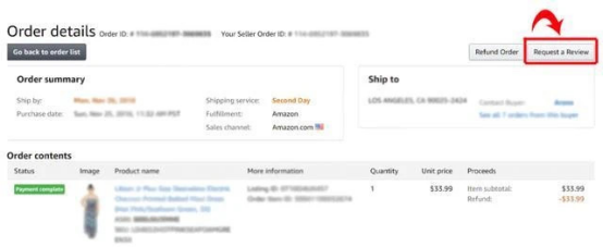 同时,有单个索评需求的卖家们也可通过“一键索评”服务,点击订单右侧的「Request Review」按钮,完成对单个订单的索评邮件发送,满足卖家们对特定订单的索评需求。