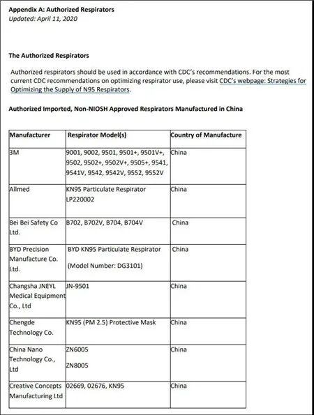 3月17日美国CDC公布了一个“优化N95呼吸器供应的策略:危机/替代策略”,批准了其它国家与N95同级别的口罩可以在美国替代使用。