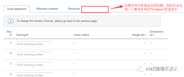 1. 进入该货件的货件管理页面,点击“Problem”选项卡进入问题页面。