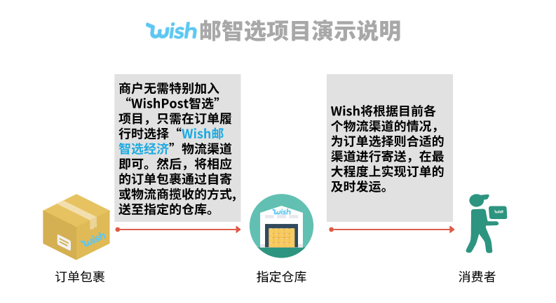 “WishPost智选”项目无需商户特别加入。只要商户在履行符合项目要求的订单的时候,选择“Wish邮智选经济”物流渠道(分为“普货”和“特货”)履行订单即可。