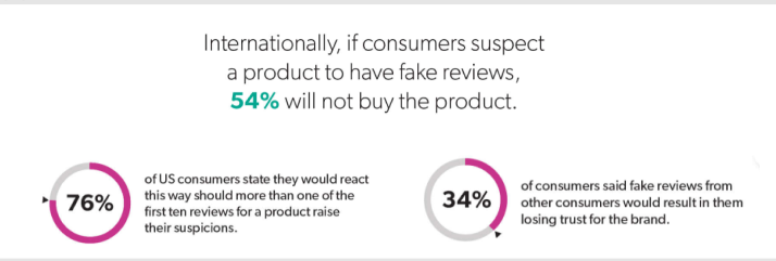 Bazaarvoice 在对来自美国、英国、法国、德国和澳大利亚的10000名消费者进行调查后发现,54%的消费者表示一旦怀疑产品有虚假评论就不会进行购买。