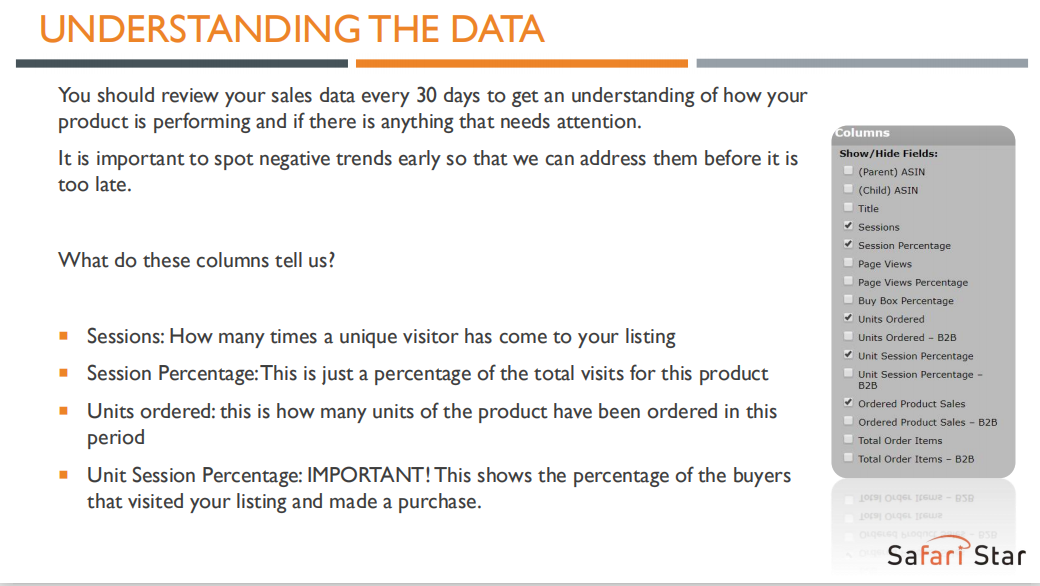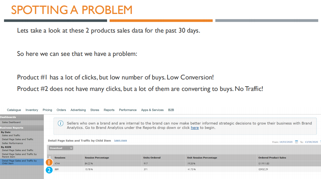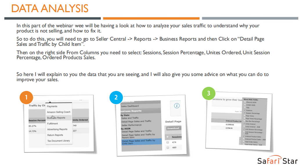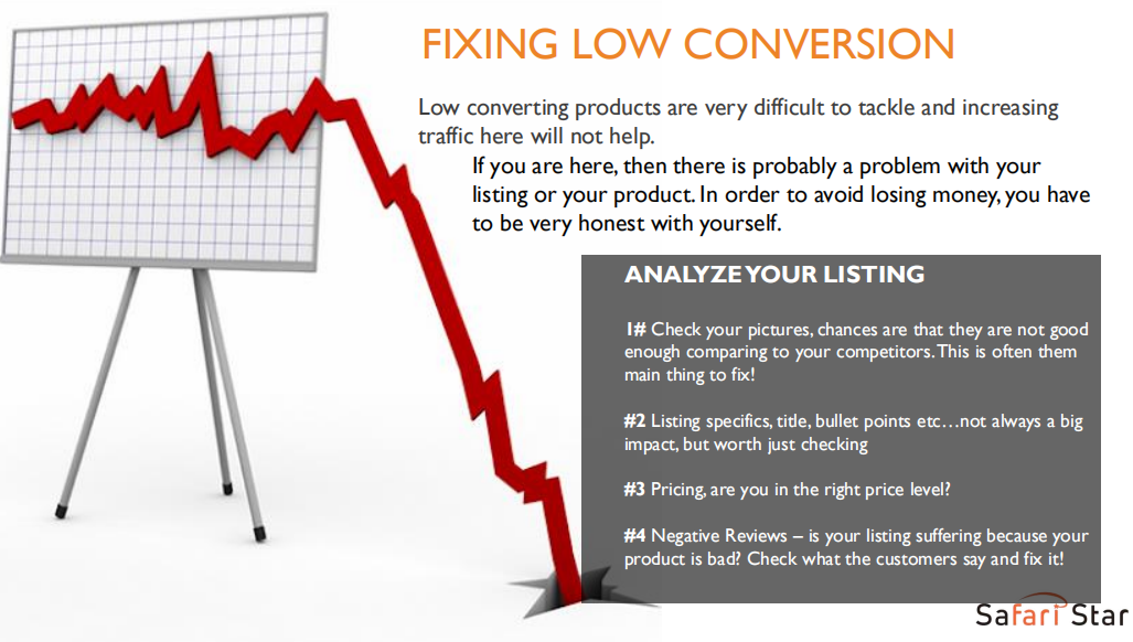 如何进行数据分析 在直播的这一部分,我们将研究如何分析您的销售流量,以了解您的产品为什么不销售,以及如何修复它。 因此,要做到这一点,您将需要转到卖方中心>报告->业务报告,然后点击“详细页销售和流量按子体”。 然后在右侧从列中选择:曝光、曝光百分比、未订购、单元会话百分比、订购产品销售。 因此,在这里,我将向你解释你所看到的数据,我也会给你一些建议,你可以做些什么提高你的销售额。 仔细解读业务报告中的数据 你应该每30天审查你的销售数据,以了解你的产品是如何执行的,如果有什么需要注意的。 必须及早发现消极趋势,以便我们能够在为时已晚之前加以解决。这些专栏告诉我们什么? ¡ 曝光:有多少次一个独特的访问者来到您的列表 ¡ 曝光百分比:这只是该产品总访问量的百分比 ¡ 订单数量:这一时期订购了多少单位的产品 ¡ 订单数量占曝光数百分比:重要!这显示了访问您的Listing并进行购买的买家的百分比。 解读以下数据,发现存在的问题 让我们看看这两个产品过去30天的销售数据。因此我们可以看到我们有一个问题: 产品#1有很多点击,但购买数量很低。低转换! 产品#2没有多少点击,但他们中的许多正在转换为购买。没有流量 如何解决低转化率的问题 低转换产品很难解决,增加这里的流量将无济于事。 如果你在这里,那么你的清单或你的产品可能有问题。为了避免赔钱,你必须对自己非常诚实。 解决方案: 分析你的Listing: 看看你链接的产品图片,与你的竞争对手相比,他们是不是不够好,这往往是需要解决的首要问题 2.检查标题、五行、产品详情 3.检查定价,你的产品定价在正确的价格水平线么? 4.负面评价以及反馈,你的Listing是否因为产品问题而导致很多差评,想办法解决客户提高的负面反馈问题。 如何解决没有流量的问题 解决低流量问题并不难,以下是我们可以做的: 1. 找你的5个顶级竞争对手,用Helium Ceribro来获得它们关键词。 2. 设定竞争者排名1-30 3. 设定排名竞争者为2 4. 从你的竞争对手那里获取最重要的关键字并复制到剪贴板 5. 将它们粘贴到索引检查器中,并在那里添加我们的ASIN,以便我们可以检查这些关键字中的哪一个是索引的。 6. 复制我们没有索引的所有关键字。 7. 删除不相关的关键词 8. 更新列表,将这些关键字包含在标题、要点和隐藏的关键词。 9. 复制索引的关键字,并使用这些关键字运行PPC活动。 10. 下一步去Cerebri,和你自己的ASIN一起跑 获取搜索量高但有机排名低的关键字,并将它们放入PPC活动中 Richard在直播过程中提到的Helium 10软件优惠购买链接: https://crushtrk.com/?a=2180&c=188&p=r&s1= 或前往:http://www.helium10.com