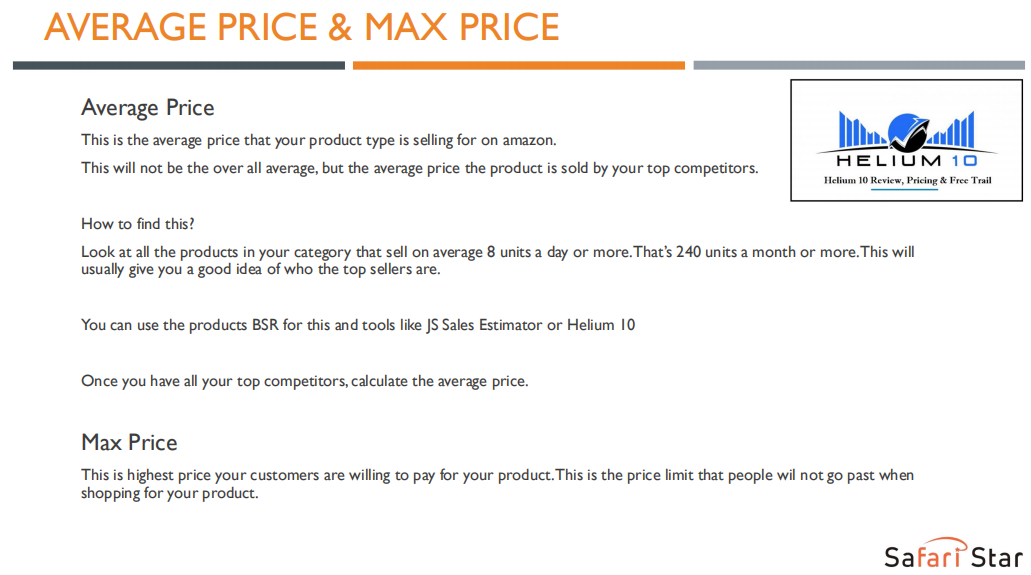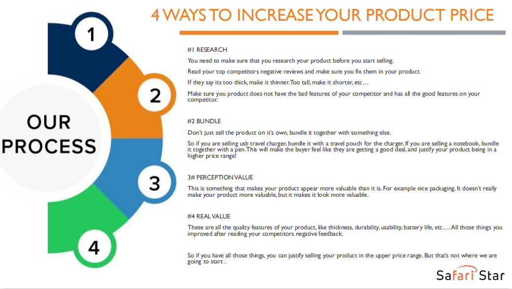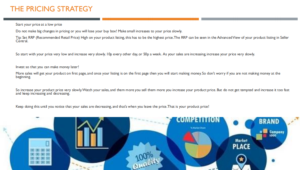 直播分享主要内容 关于如何进行产品定价 如何计算各项费用 确定三个定价层次 如何执行定价策略 如何分析亚马逊的销售数据 如何解决销售转化率低的问题 如何解决流量低的问题 如何进行产品定价? 当你研究一种产品时,你会注意到三种不同的定价水平: 高于市场价 平均价(理想定价区间是在平均价和高价之间) 低于市场价售卖 任何低于价格下限,没有利润!所以它必须高于价格下限 如何核算产品的成本?什么是你的底价。 在核算产品的产品成本时候,需要将所有运营过程中产生的成本,都考虑进去,比如应该包括: 产品的制造成本,也就是采购价 包装成品,包括产品修改包装后,以及外箱坏了,需要自己采购等 FBA物流成本 亚马逊平台费用(包含:产品佣金,FBA配送费,仓储费,广告费等平台内产生的所有费用) VAT注册申报所产生的费用 因此,扣除以上提到的所有费用后,什么是最低的价格,你可以出售它,并仍然赚取一些利润。 这意味着,如果你的产品价格低于底价一分钱,你就会损失一分钱! 产品的平均价格和最高价格 平均价格 这是你的产品类型在亚马逊上销售的平均价格。 这不是所有的平均价格,但产品的平均价格是由你的顶级竞争对手出售的。 怎么找到这个? 看看你的类别中的所有产品,平均每天销售8台或更多。这是240个单位一个月或更多。从这些销售数据也能知道,谁是Top Sellers 您可以使用产品BSR为此和工具,比如JS或者Helium 10,一旦你有所有的顶级竞争对手,计算平均价格。 最高价格 这是您的客户愿意为您的产品支付的最高价格。这是人们在购买你的产品时不会通过的价格限制 你将如何对你的产品进行定价? 一般来说,你想把你的产品定价在平均价格之间价格和最大价格。 但这并不意味着你的产品定价低于平均水平不会带来利润! 人们购买产品不是因为价格,而是因为价值。你必须了解你的产品的价值才能定价。 如果你的产品价格太高,达到最高价格,人们会少买你的产品,因为它会变得不那么冲动购买。你的产品会转移得更慢,你会赚更少的钱。 4种能够提高你的产品定价的方法