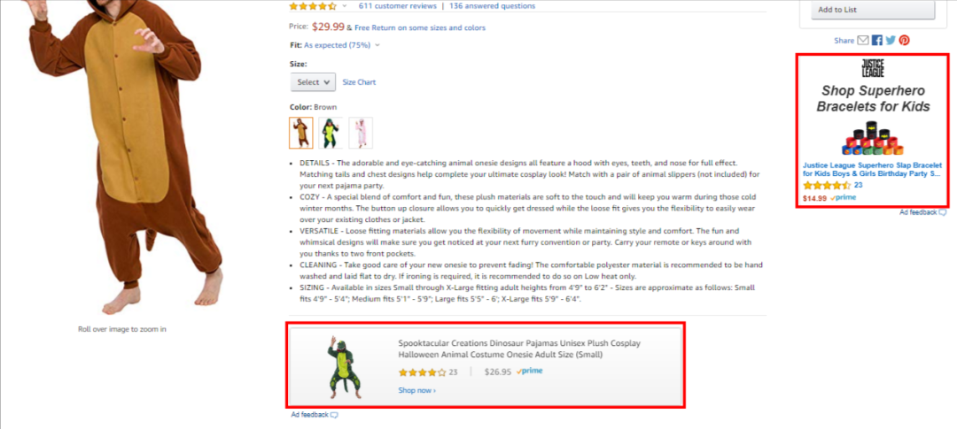 赞助商展示广告是按点击计费(CPC),它可以提高产品的曝光率,甚至定位竞争对手的产品。