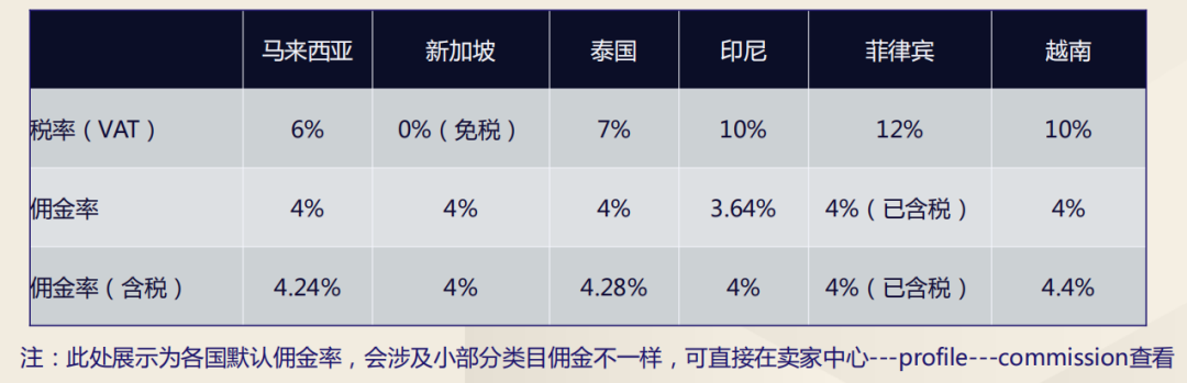 菲律宾的佣金计算方式为:(货款-折扣费用)*类目的佣金率